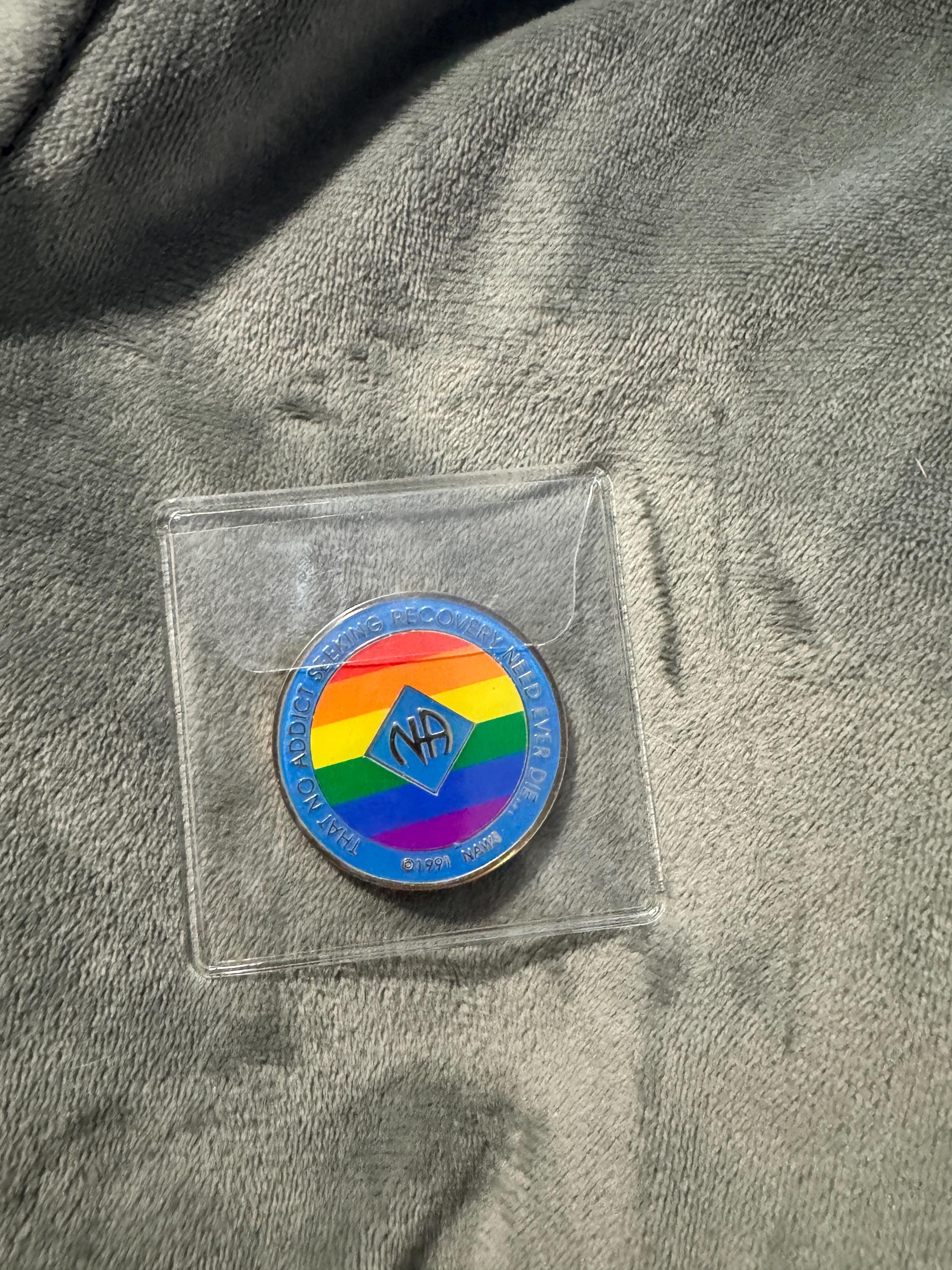 Our HD (High-Definition) graphic-embellished NA (Narcotics Anonymous) coins offer a bold and colorful way to honor your recovery journey. Featuring a vibrant rainbow design, these tokens symbolize diversity, inclusivity, and the beauty of embracing one's true self in recovery. They serve as powerful reminders of resilience, acceptance, and the colorful life ahead.