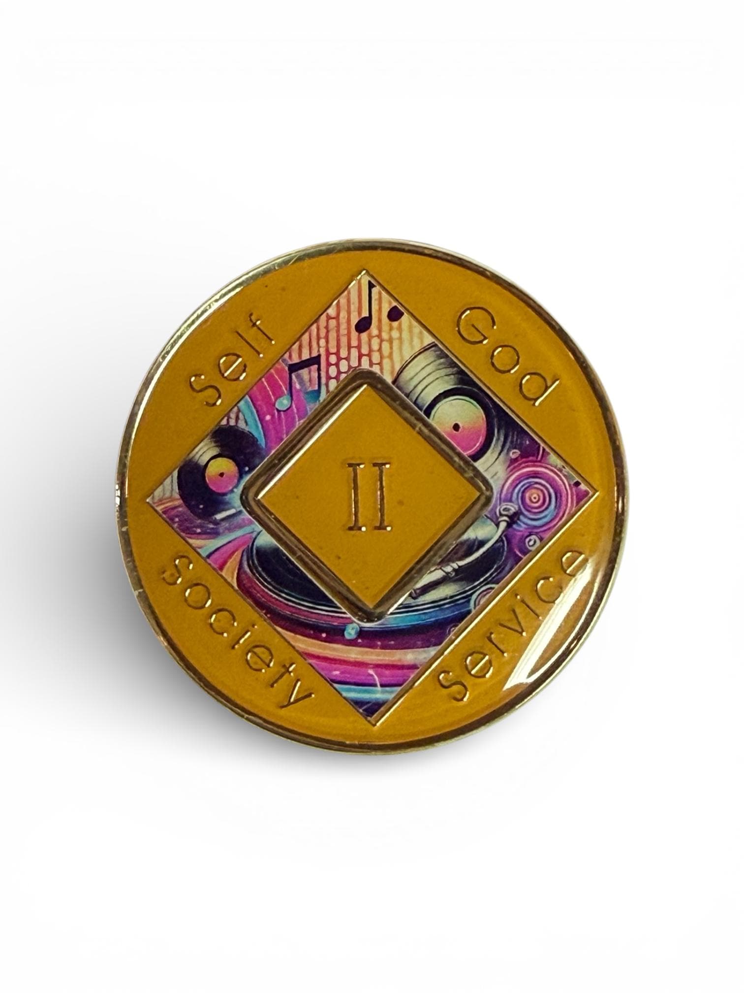 Honor your recovery journey with this vibrant, music-inspired NA chip. Designed for those who find healing and connection through music, this token symbolizes rhythm, balance, and the harmony of sobriety.