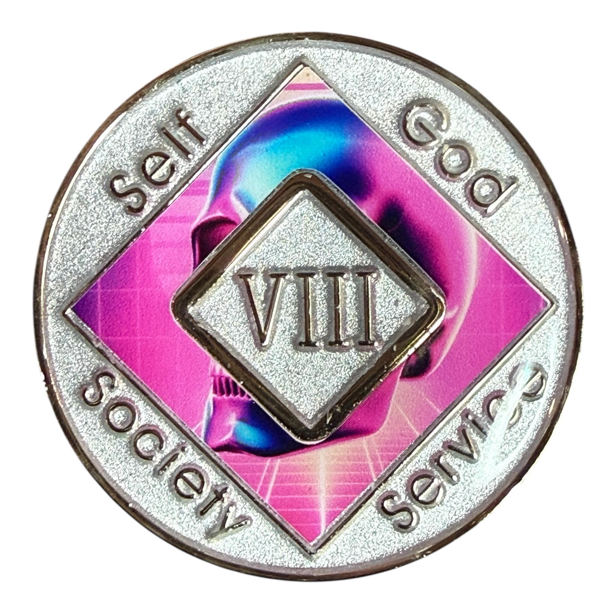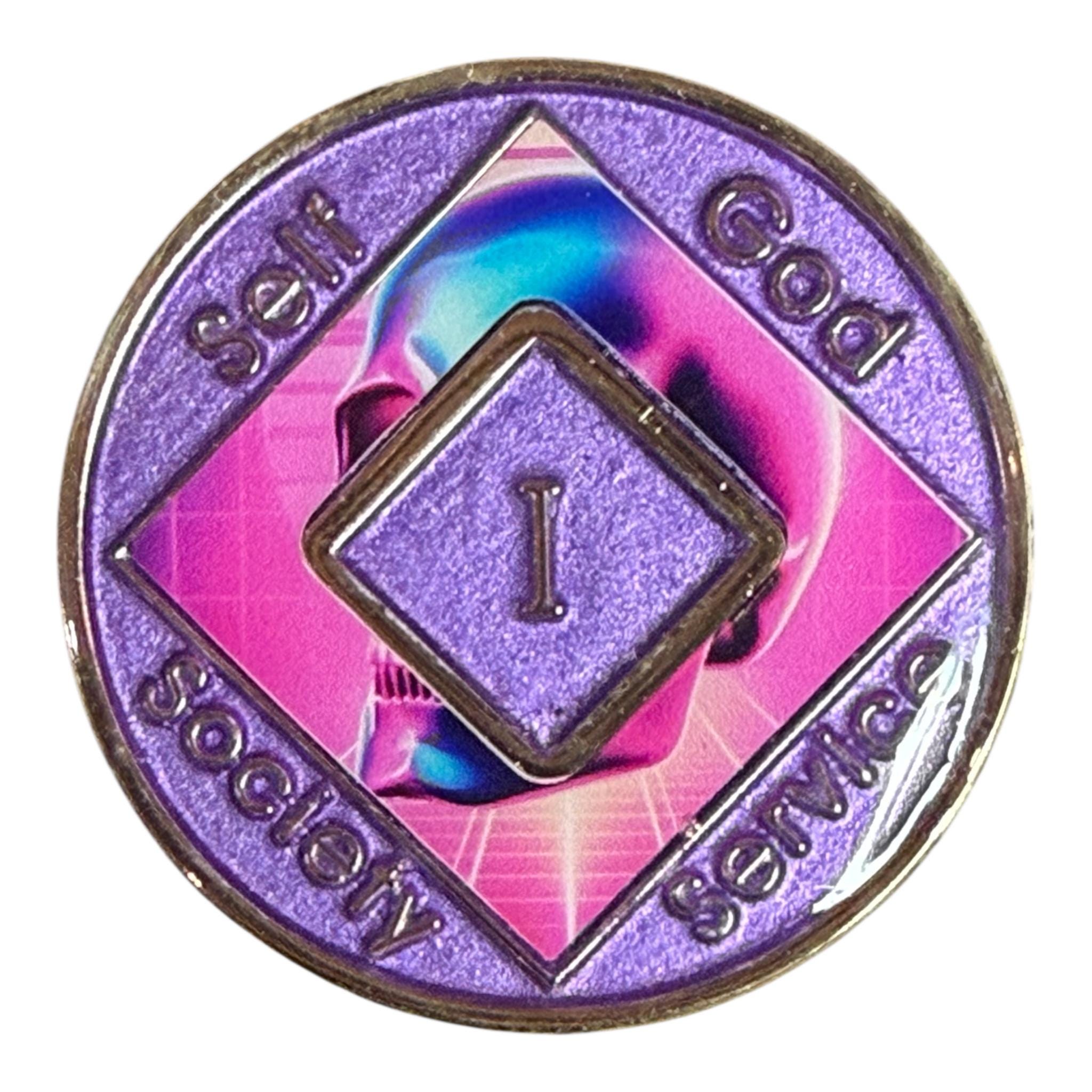 Make a bold statement in your recovery journey with this Neon Skull NA Coin. Showcasing a futuristic, cyberpunk-inspired skull design, this medallion symbolizes rebirth, transformation, and the strength found in change. Its vibrant neon colors and digital-inspired aesthetic make it a striking and unique token for anyone embracing a fresh, sober life.