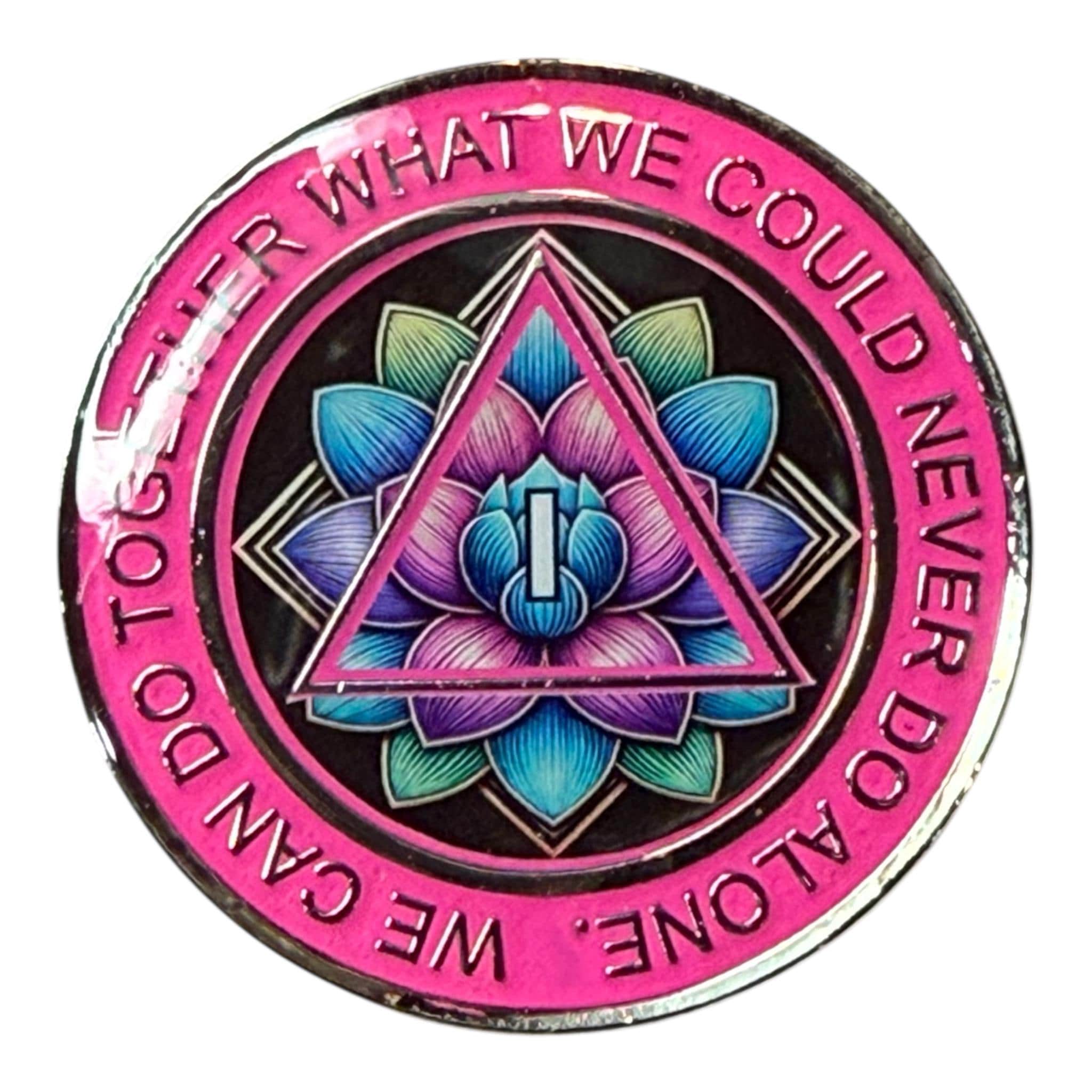 Inspired by the powerful symbolism of the lotus flower, this Narcotics Anonymous recovery medallion offers a beautiful way to celebrate your clean time or gift someone on their path. Unlike basic recovery tokens, this handcrafted chip combines artistic beauty with personal significance.