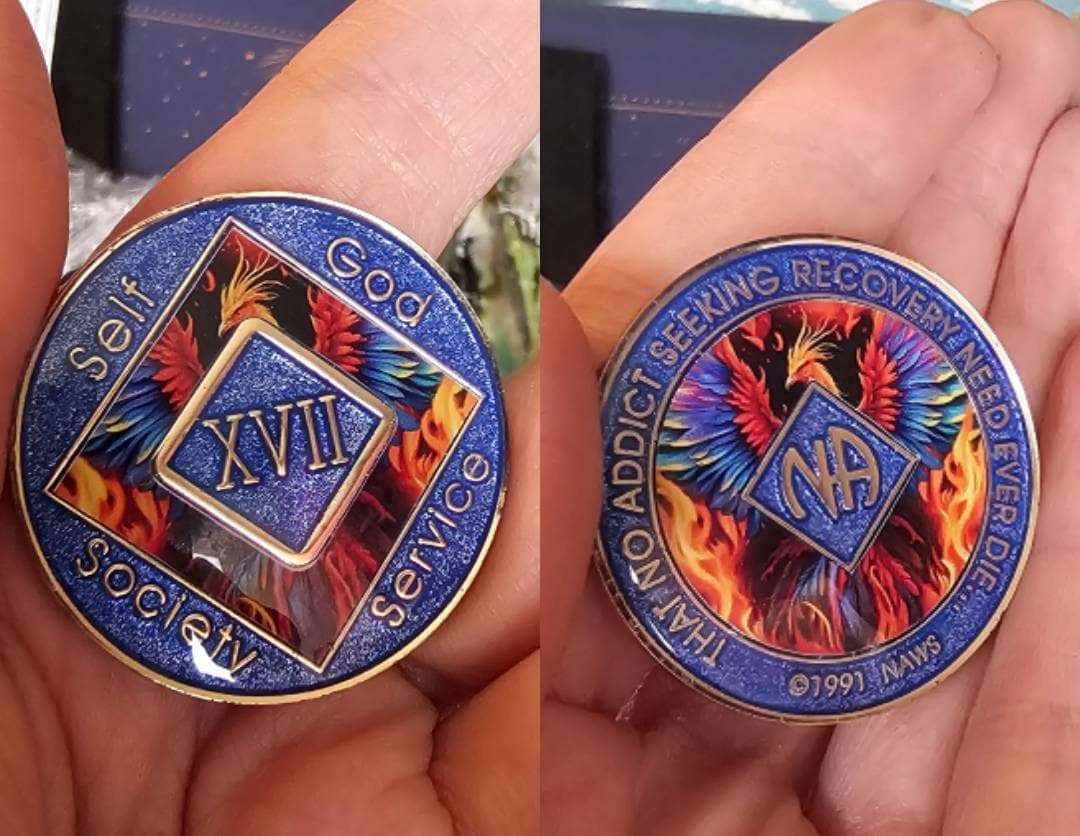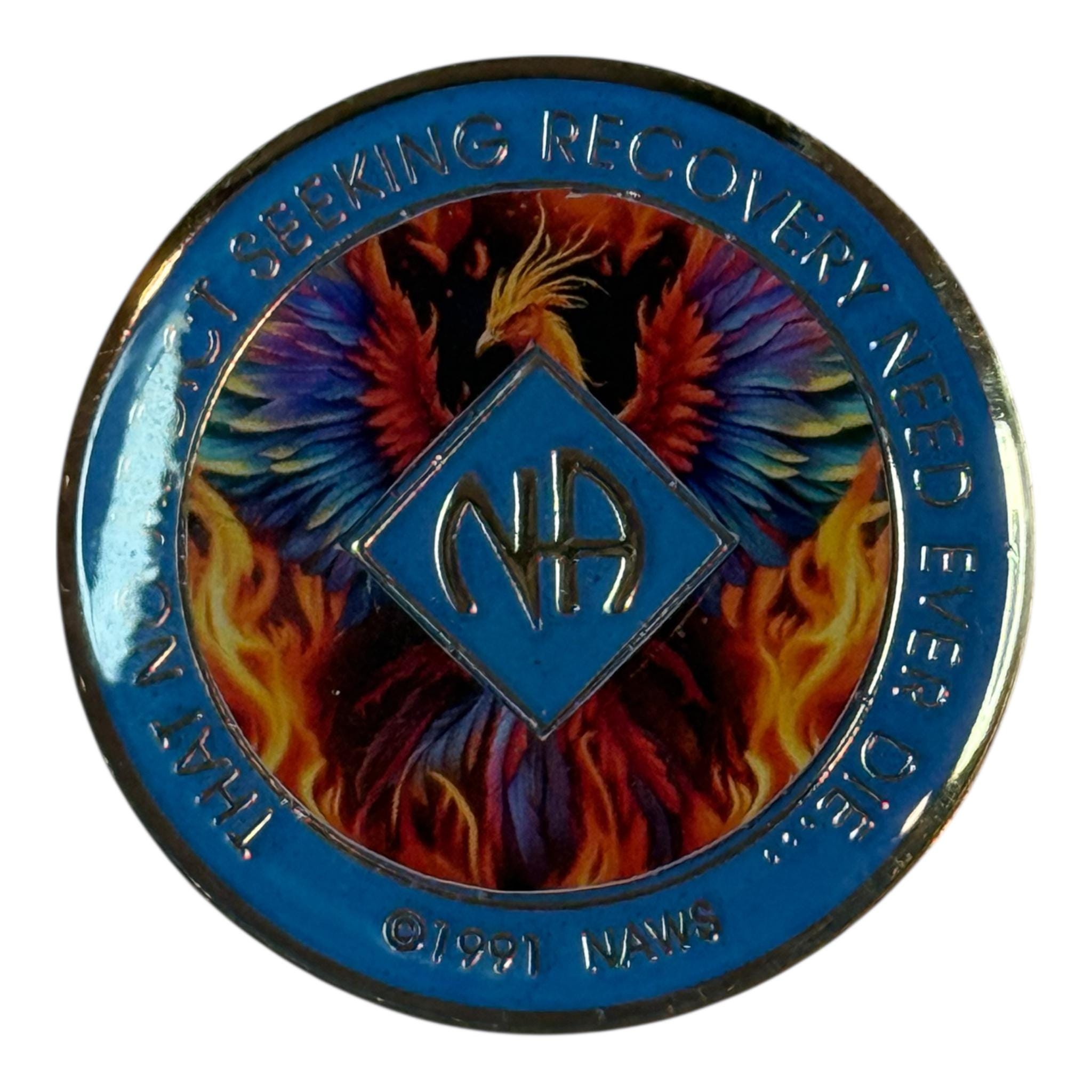 Celebrate your recovery journey with this powerful NA Phoenix Medallion, symbolizing transformation, resilience, and rebirth. The striking design features a vibrant phoenix rising from the flames, representing the strength found in overcoming addiction.