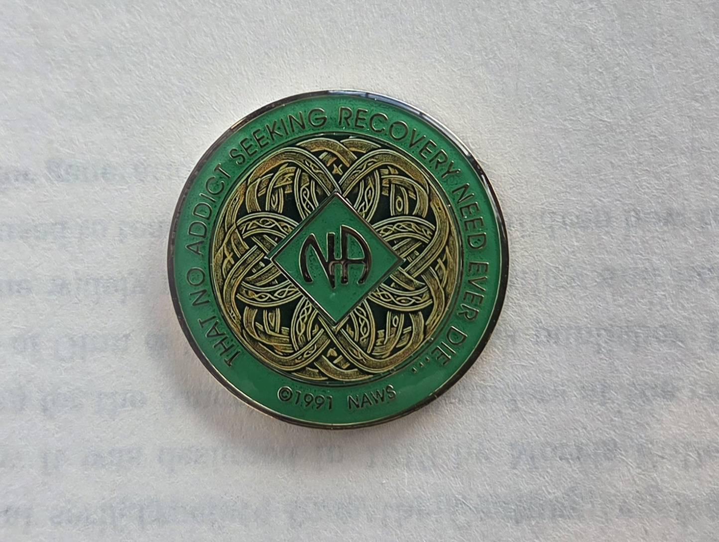 The continuous lines of the knot represent the unbroken commitment to living clean and the interconnected support found within the recovery community. Rich in meaning and timeless in style, this NA coin is a powerful way to honor a clean date and celebrate the strength found in fellowship and perseverance.