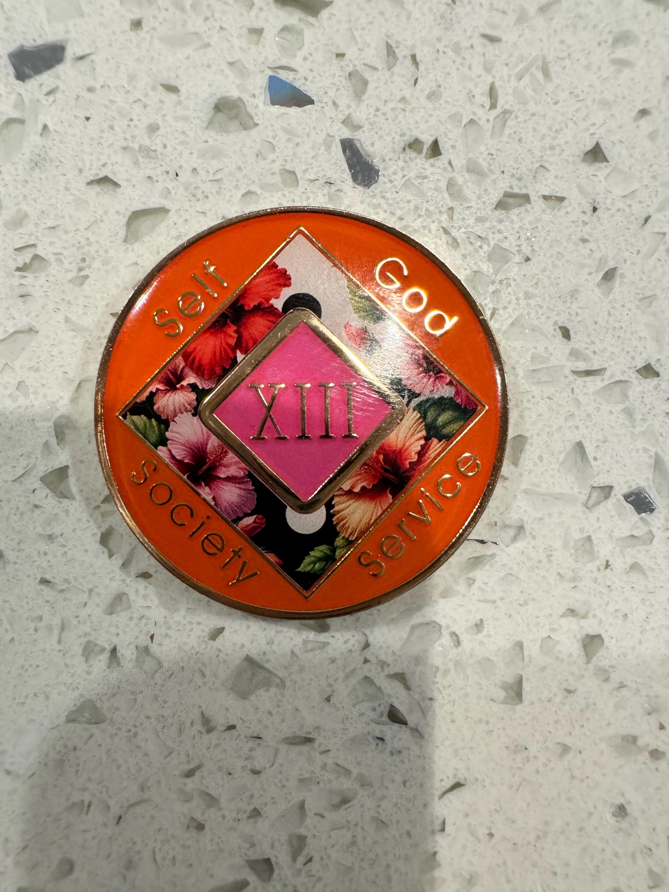 Celebrate your recovery journey with this beautifully designed Narcotics Anonymous medallion, featuring a vibrant hibiscus floral yin-yang pattern. This unique token symbolizes balance, growth, and serenity in sobriety, making it a meaningful keepsake or gift.