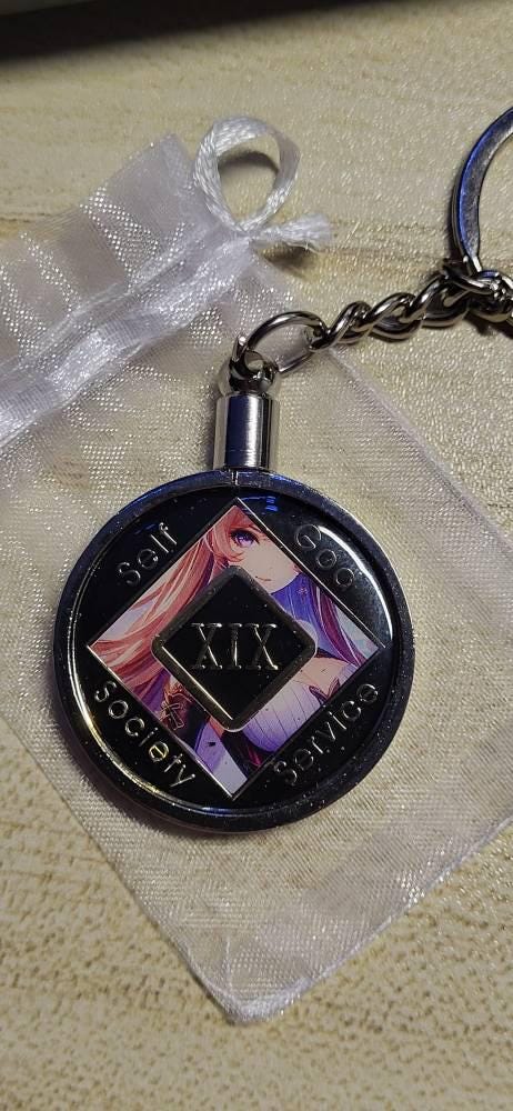 Celebrate your recovery journey with this stunning anime-themed Narcotics Anonymous medallion. Designed for those who appreciate anime aesthetics while honoring their commitment to sobriety, this custom NA token is a beautiful blend of artistry and recovery symbolism.