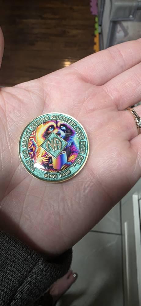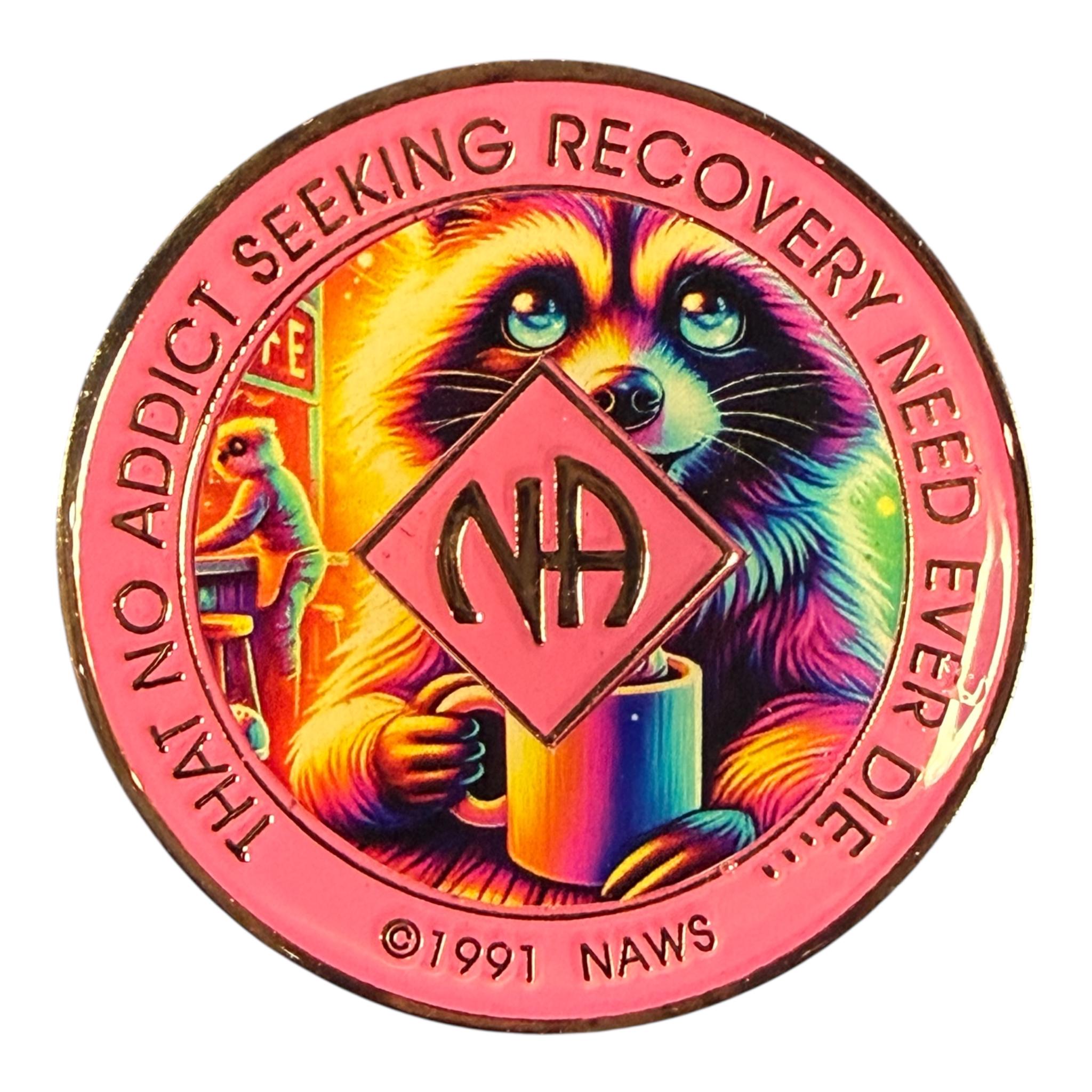 Coffee Raccoon NA Coin – Unique Narcotics Anonymous Recovery Chip