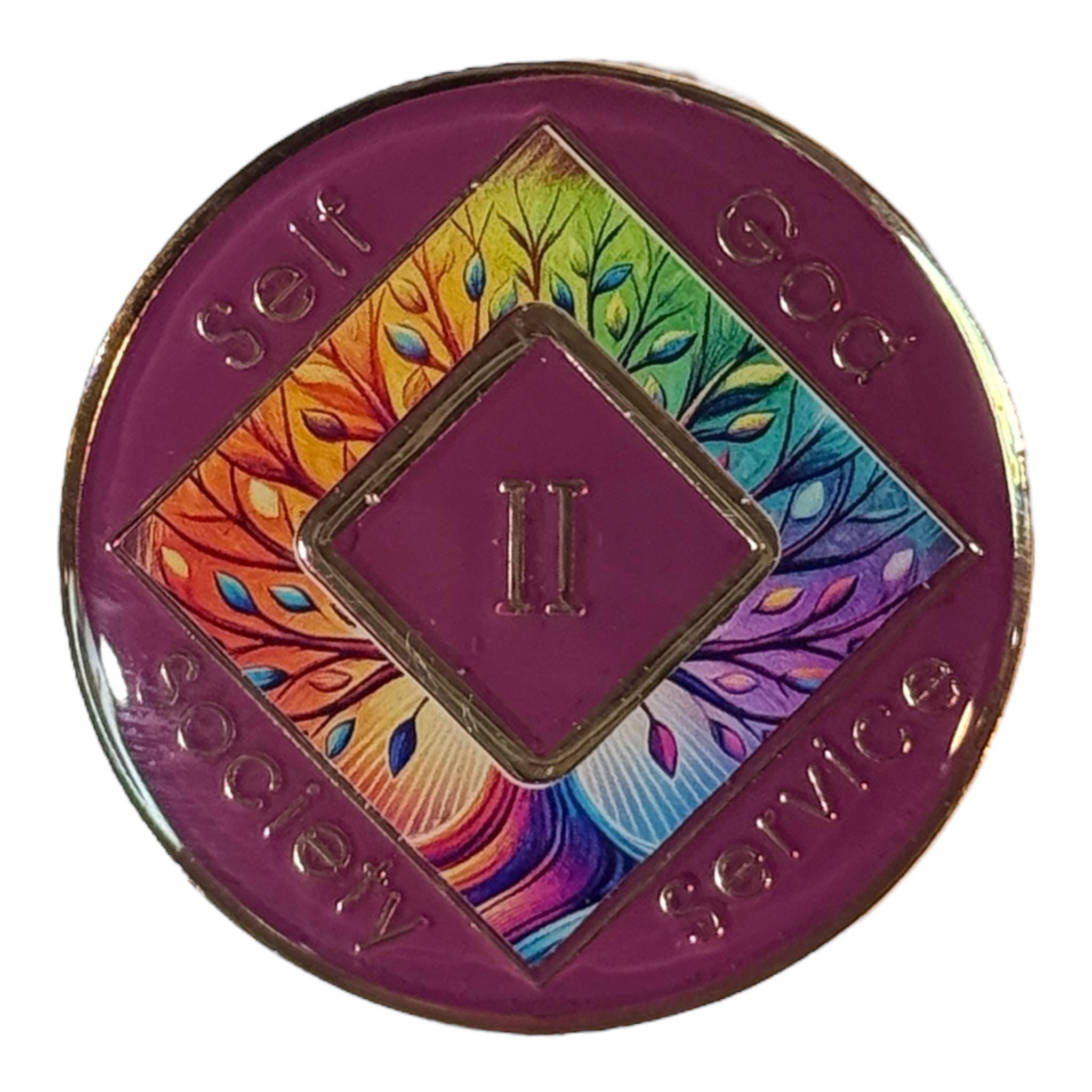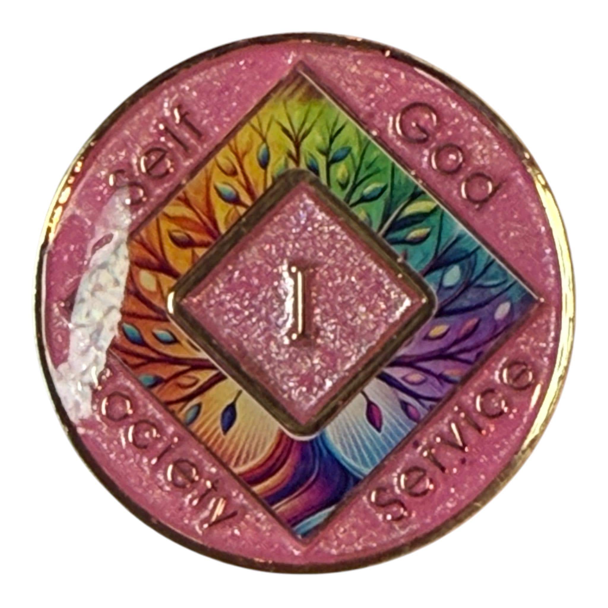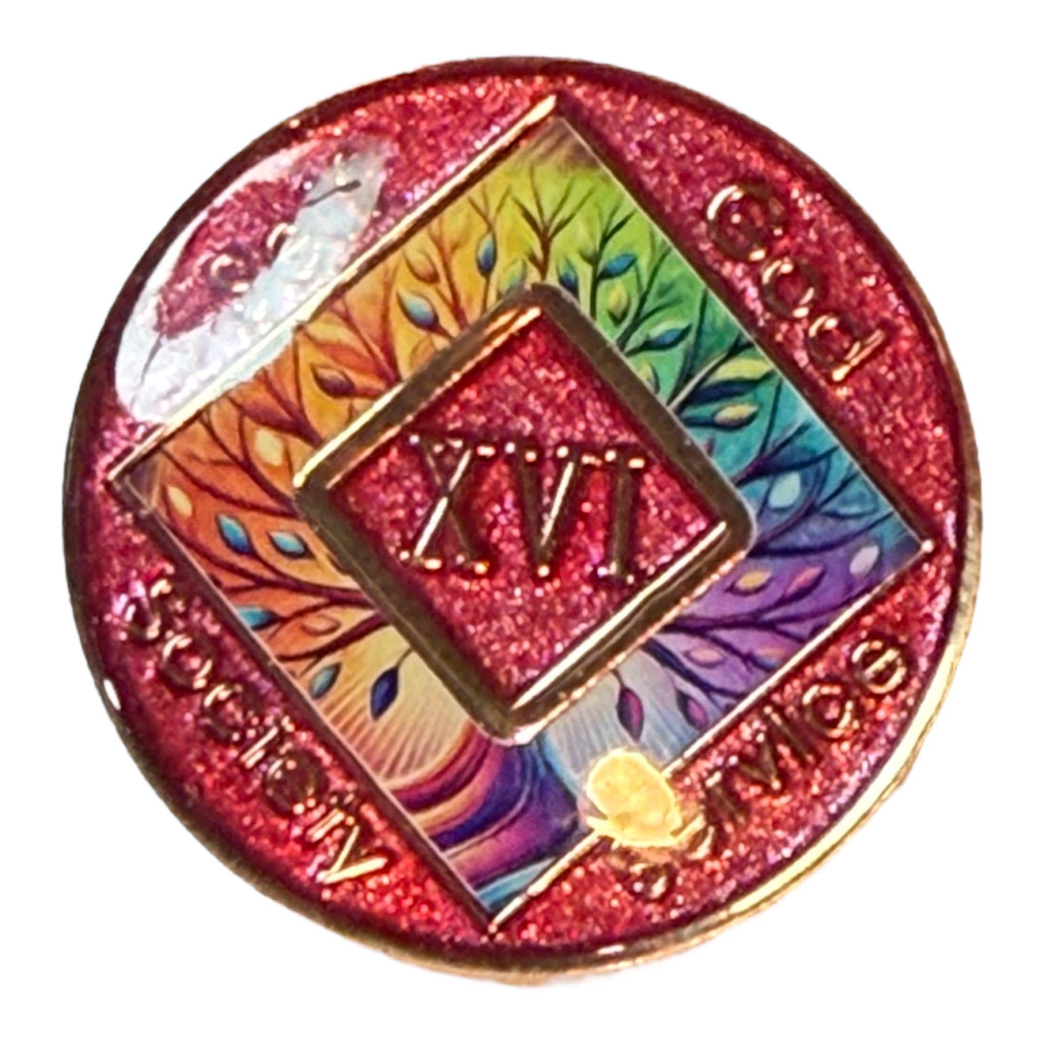 Celebrate your recovery journey with this Tree of Life NA Medallion, a stunning symbol of strength, renewal, and personal growth. Featuring a vibrant, multicolored tree design, this medallion represents the deep roots of recovery and the endless possibilities of a sober life.