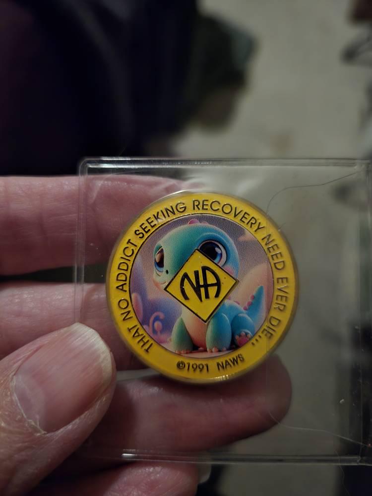 Baby Dinosaur NAToken – Playful & Inspiring Narcotics Anonymous Recovery Coin