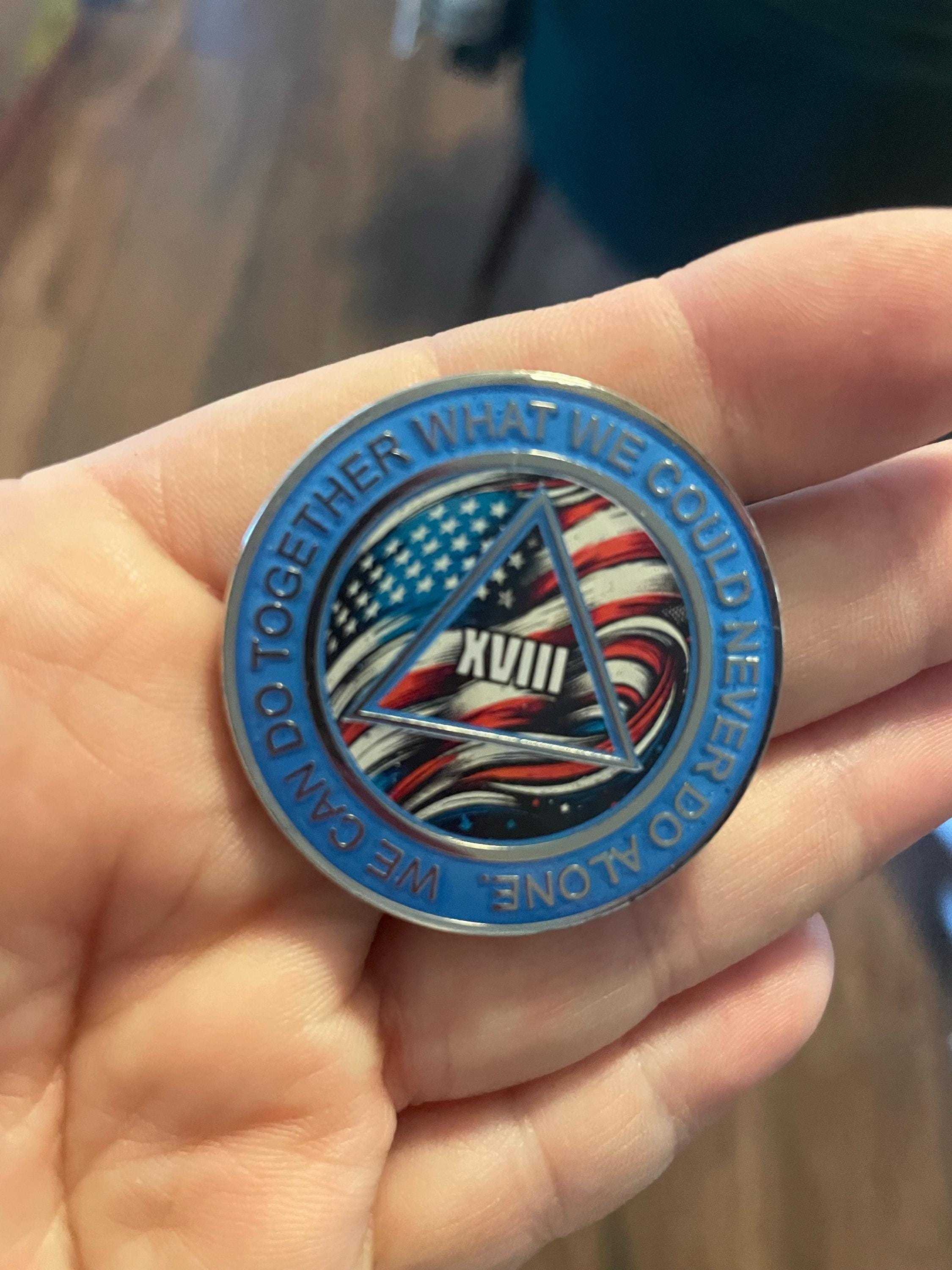 AA American Flag Recovery Medallion – USA Patriotic AA Sobriety Token – Serenity Prayer Coin