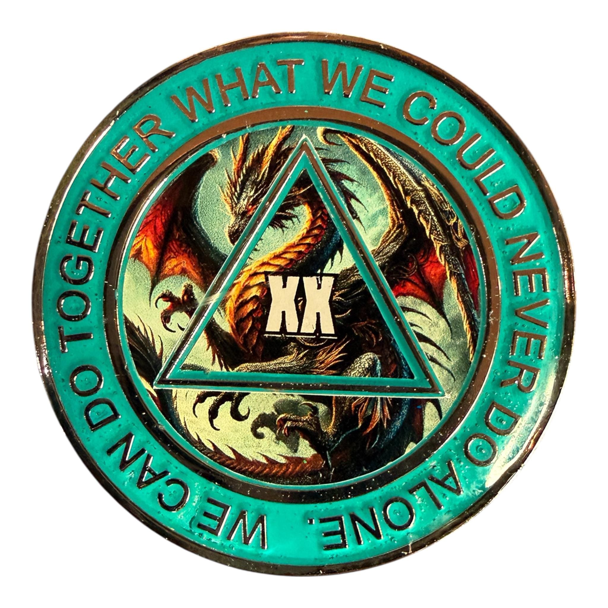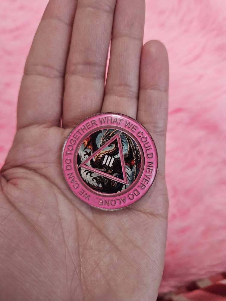 Step into your power with our custom AA medallion featuring a bold dragon design — a symbol of transformation, strength, and the fire within. Handcrafted by Dan's Custom Gifts, this sobriety coin is more than a milestone marker — it’s a personal emblem of resilience, growth, and your incredible recovery journey. Choose your recovery year and paint color to make this piece uniquely yours.