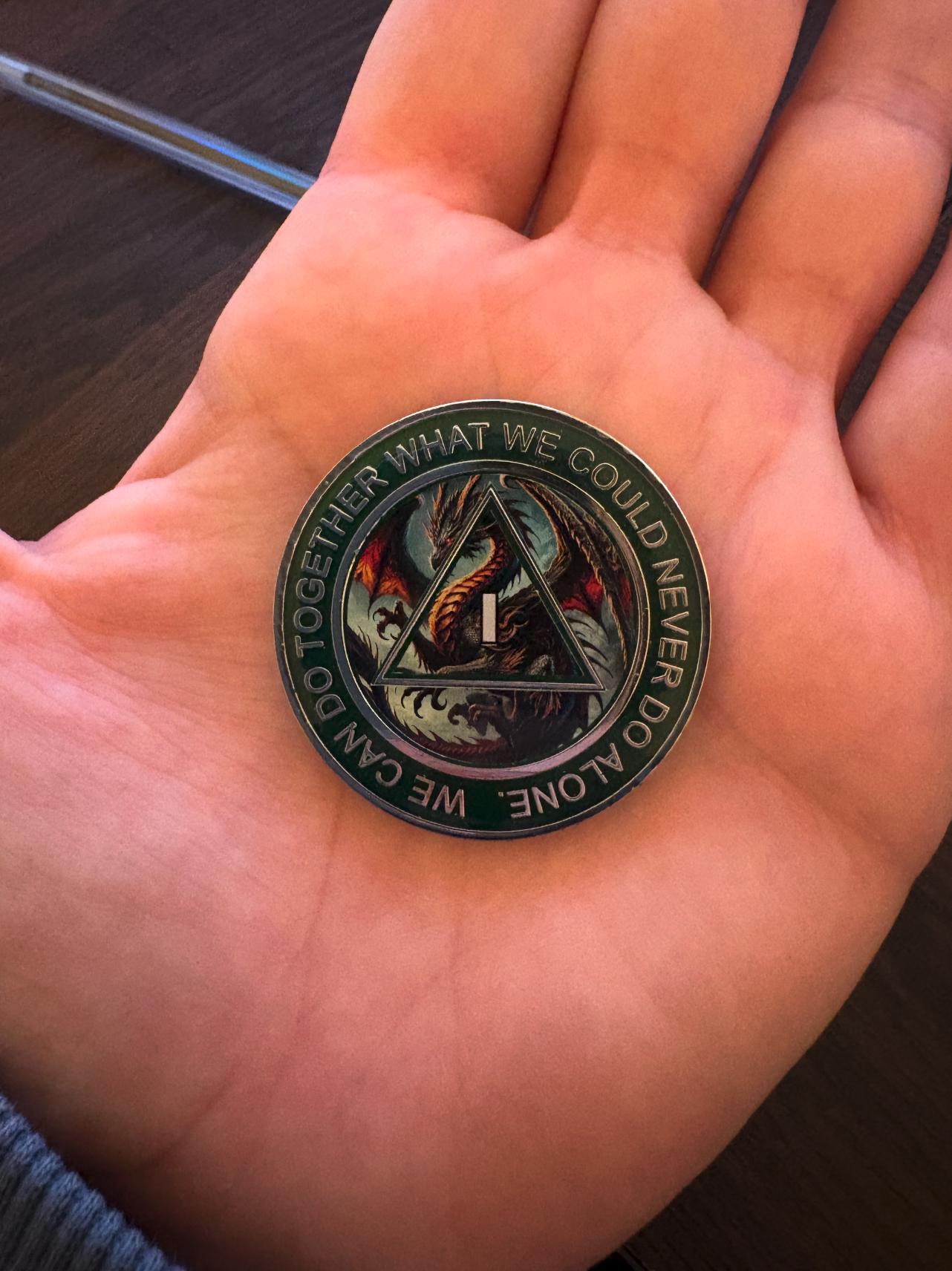 This mythical recovery token is the perfect gift for yourself or someone you love who's walking the path of sobriety—one day at a time, with the heart of a dragon.
