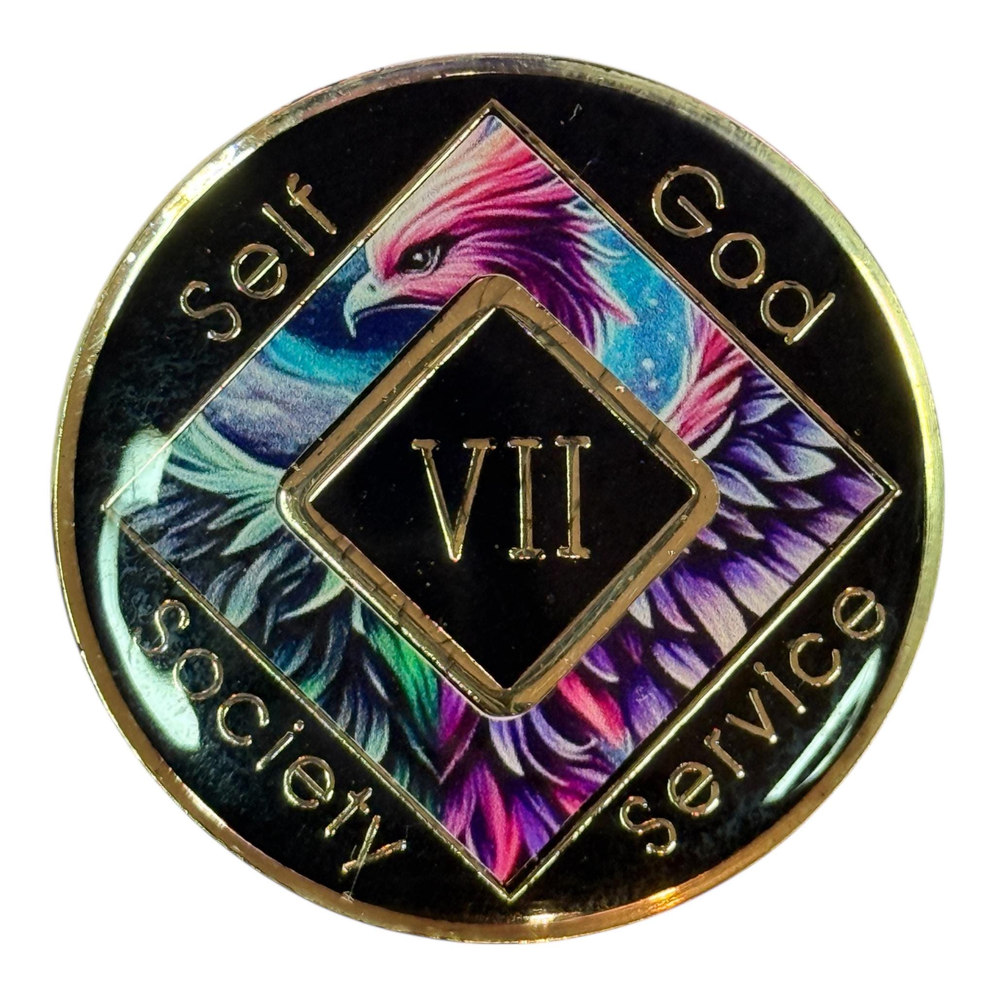 Inspiring Inscriptions: The medallion is engraved with NA’s core principles—Self, God, Society, and Service—surrounding the central design, grounding your recovery journey in these foundational values.