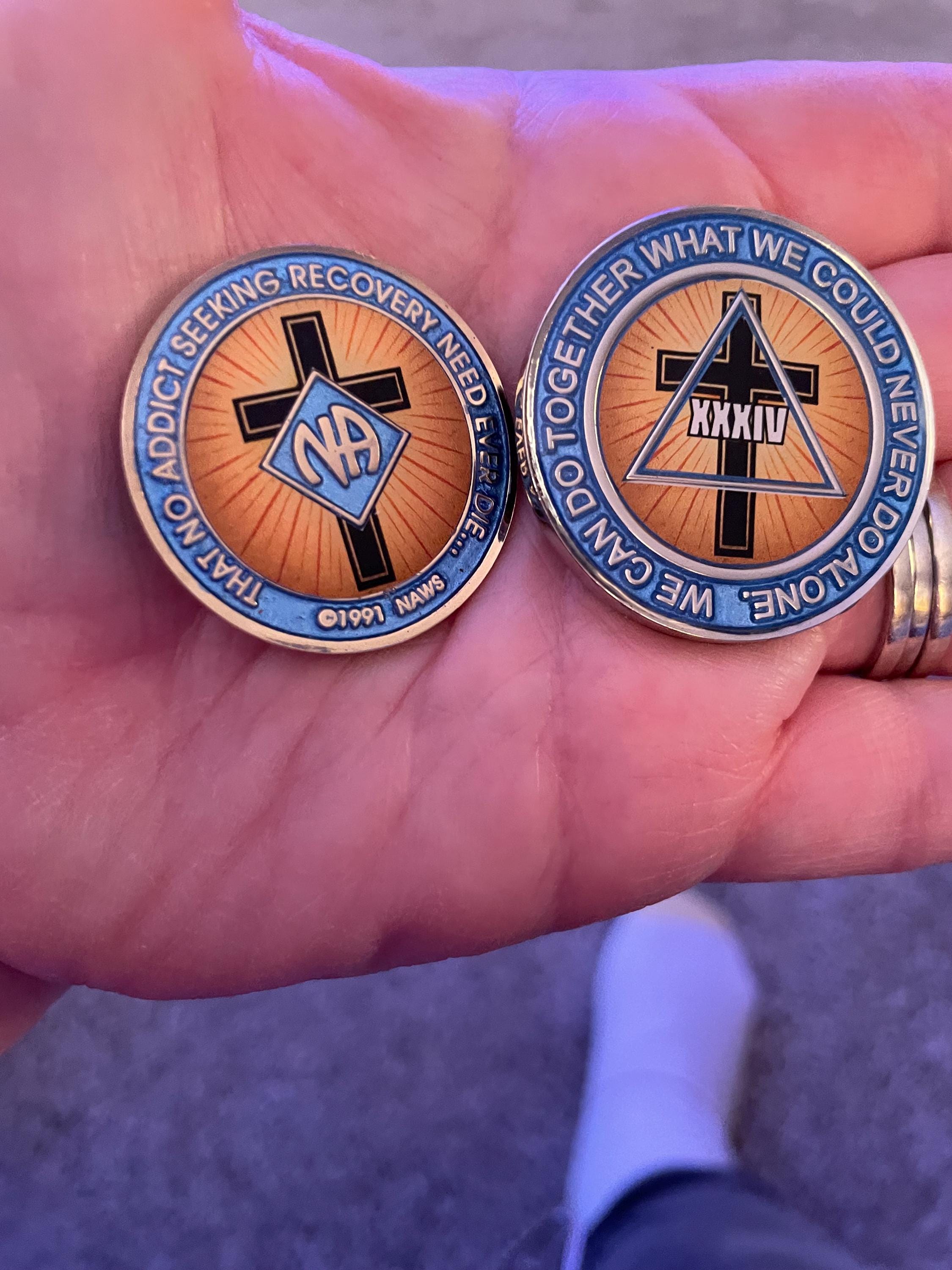 Celebrate clean time with a medallion that blends spiritual strength and recovery unity. This powerful Narcotics Anonymous medallion features a radiant black cross over a golden background, representing hope, faith, and healing. Whether you’re shopping for yourself or gifting someone on their journey, this handcrafted medallion serves as a deeply personal token of progress.