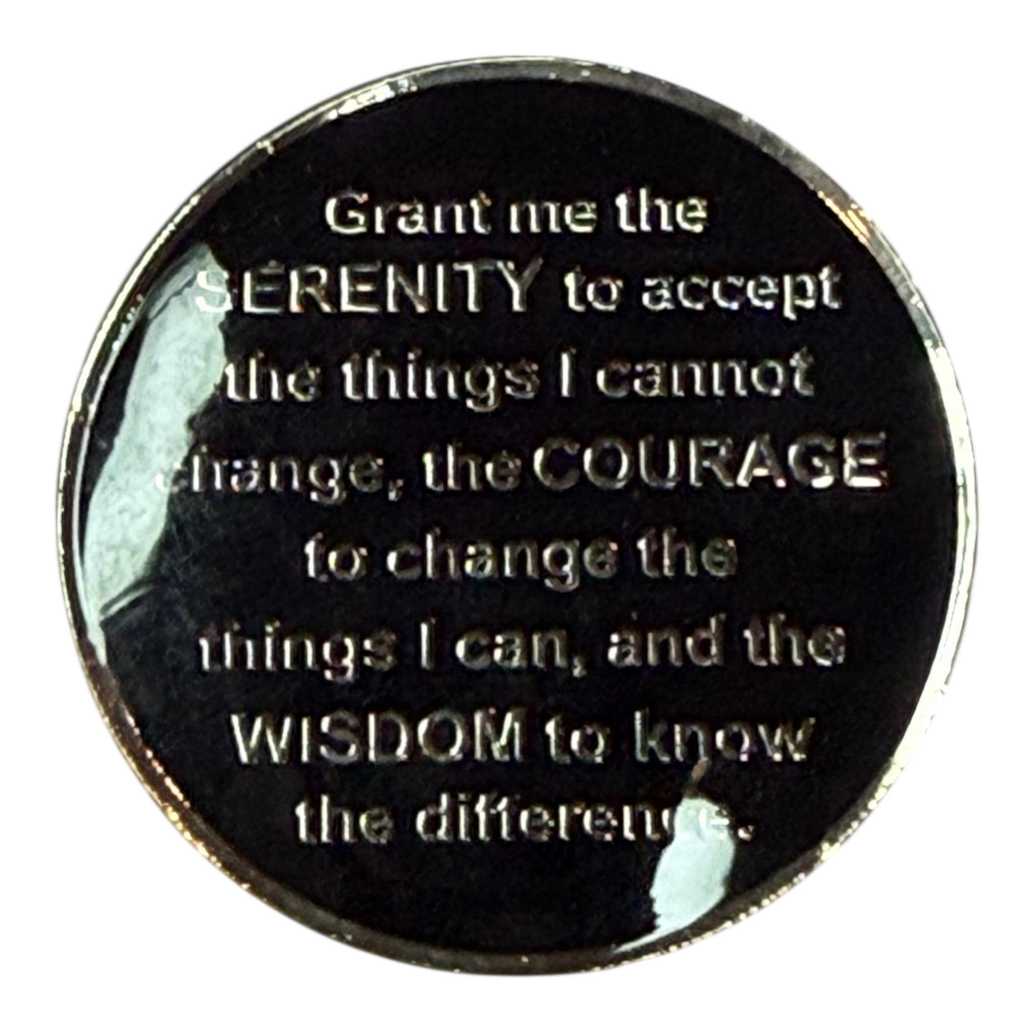The reverse side includes the Serenity Prayer, a grounding reminder of strength, peace, and purpose.
