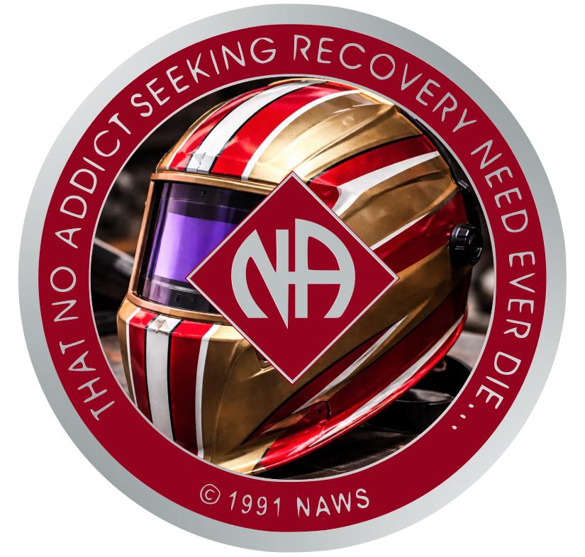 NA logo and “That No Addict Seeking Recovery Need Ever Die…” on back
