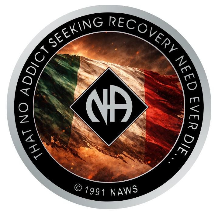 Celebrate your clean time with strength, pride, and heritage. This Narcotics Anonymous medallion features a powerful image of the Mexican flag waving in a fiery sky — a symbol of resilience, identity, and perseverance.