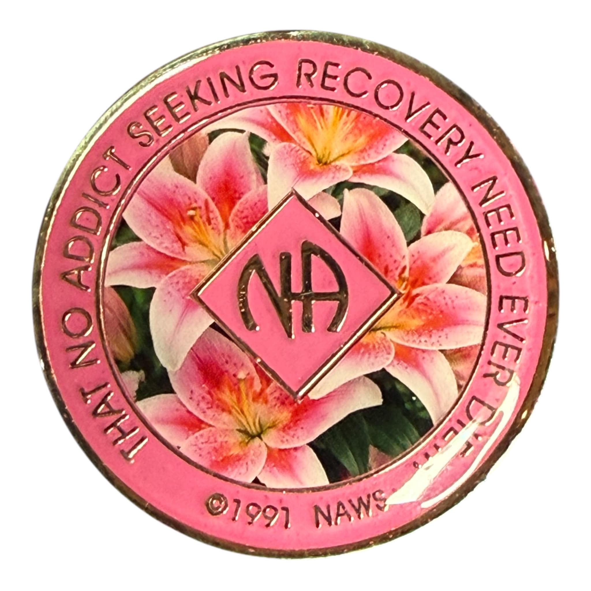 Pink Lily Narcotics Anonymous Medallion – Clean Time Chip / Recovery Token