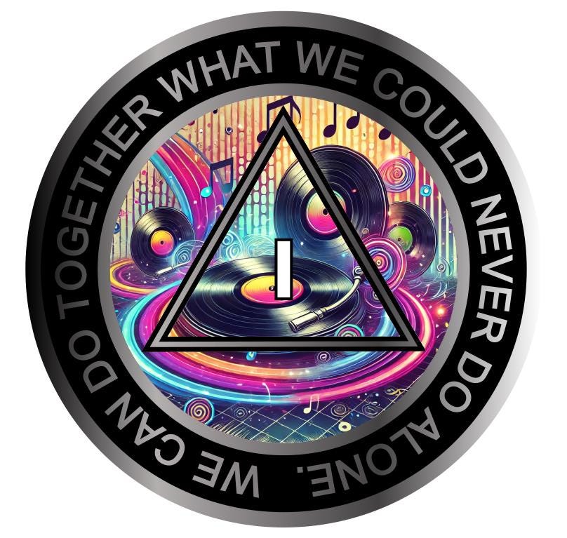 Celebrate one year of sobriety with this vibrant, music-themed AA medallion. Featuring a dynamic design of vinyl records, musical notes, and swirling color, this chip is perfect for anyone whose recovery journey is deeply connected to music.