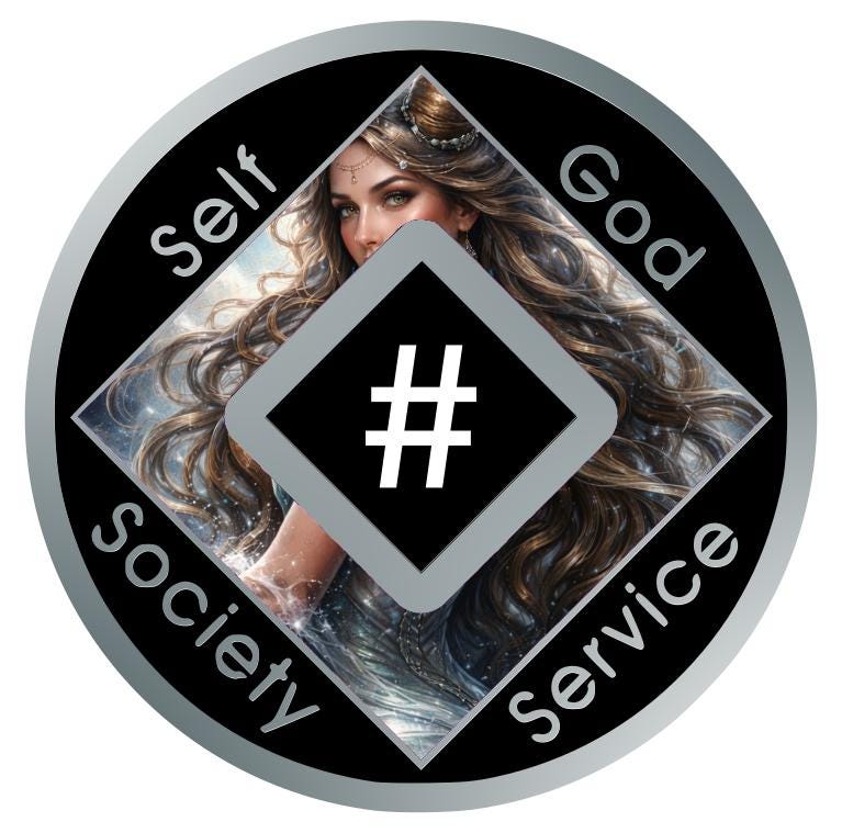 The back of the coin features the NA Service Symbol with “Self, God, Society, and Service” around the diamond, framing the same Capricorn-inspired design. Each medallion is custom crafted and sealed with a resin finish for durability and depth.