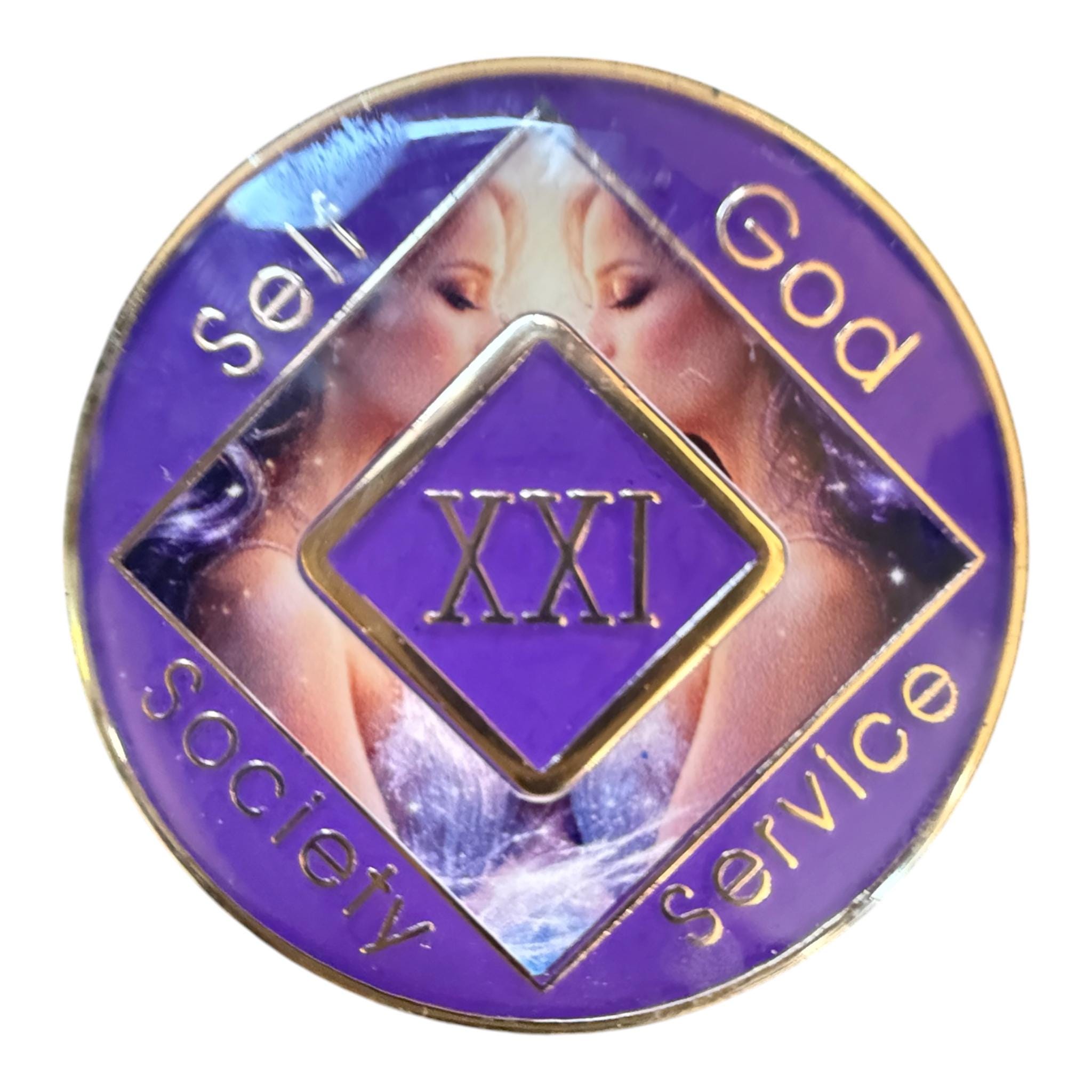This Gemini-themed Narcotics Anonymous medallion features elegant twin imagery symbolizing duality, transformation, and inner growth in recovery. The front highlights the core NA principles: Self, God, Society, and Service. The reverse is framed with the phrase “That no addict seeking recovery need ever die…,” reflecting the heart of the NA message. A meaningful coin honoring clean time and the journey of personal change.