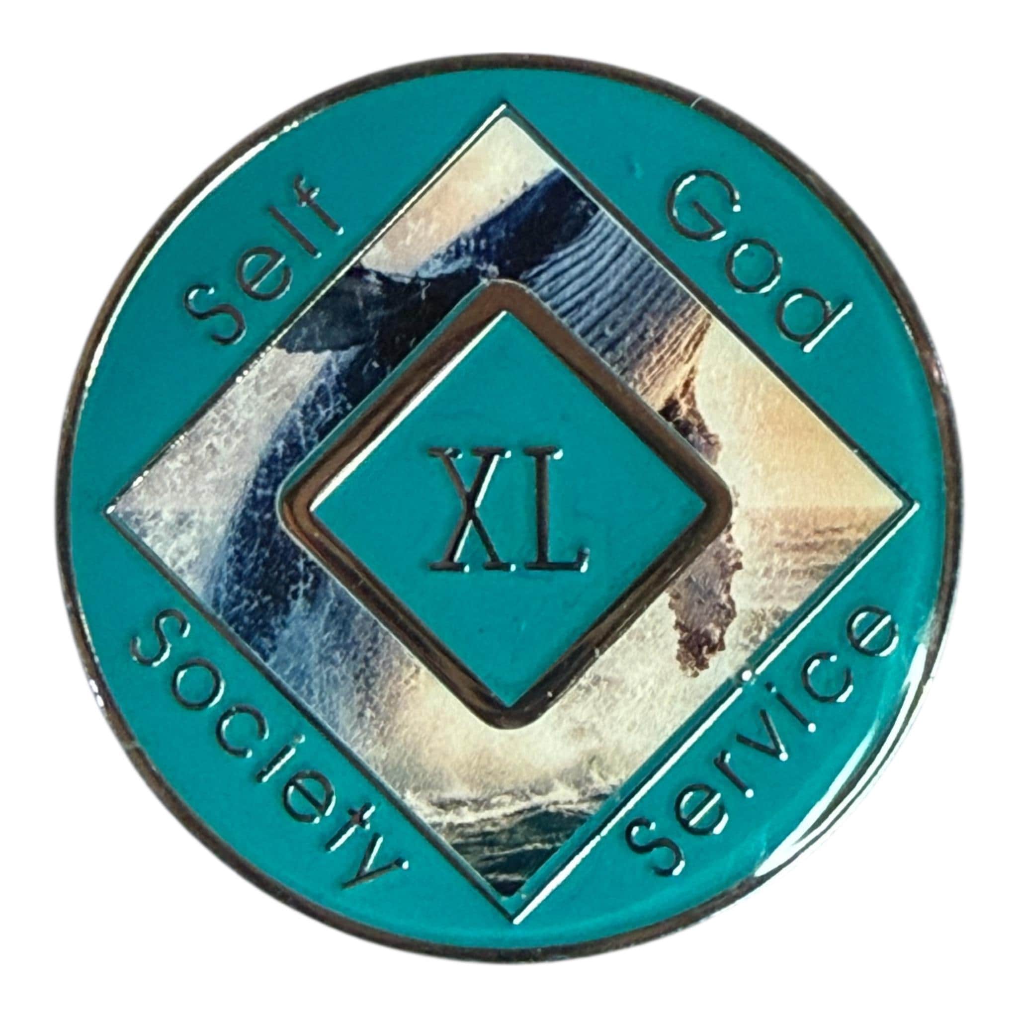 This Narcotics Anonymous medallion features a breathtaking humpback whale breaching the ocean’s surface. The powerful imagery symbolizes strength, freedom, and rising above life’s challenges. Like recovery itself, the whale’s leap represents breaking free and moving toward a new way of life. A meaningful coin celebrating resilience and clean time.