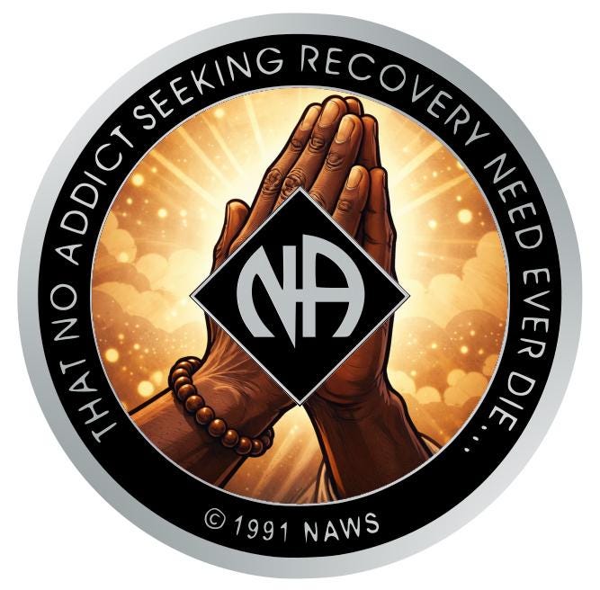 This meaningful NA token highlights powerful praying hands bathed in radiant light, symbolizing surrender, humility, and a deep connection to a Higher Power. Recovery begins with the courage to ask for help, and this design captures the strength discovered through prayer, meditation, and spiritual growth.