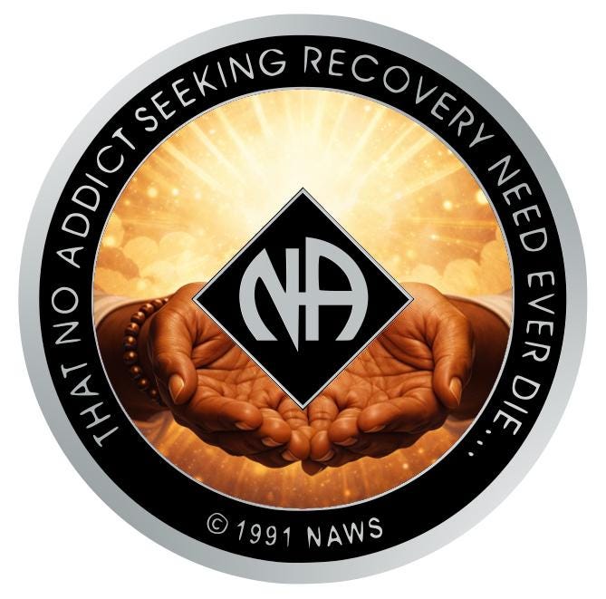 Open Hands NA Recovery Medallion – Surrender & Service Sobriety Chip with “That No Addict…” Back