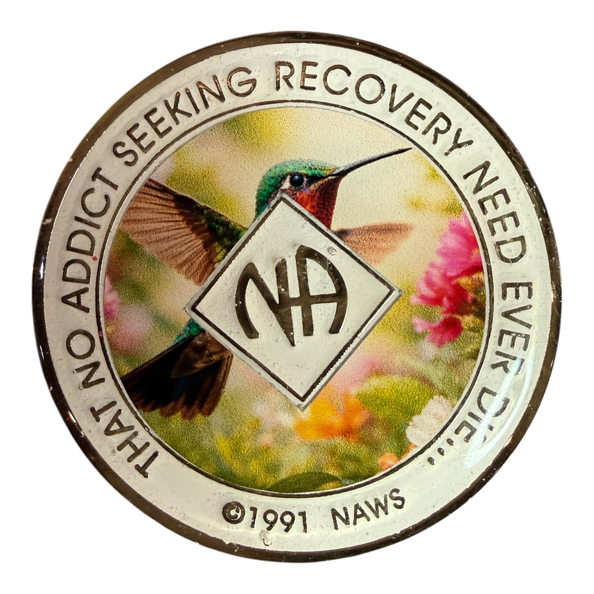 Hummingbird NA Recovery Medallion – Joy & Resilience Sobriety Chip with “That No Addict…” Back