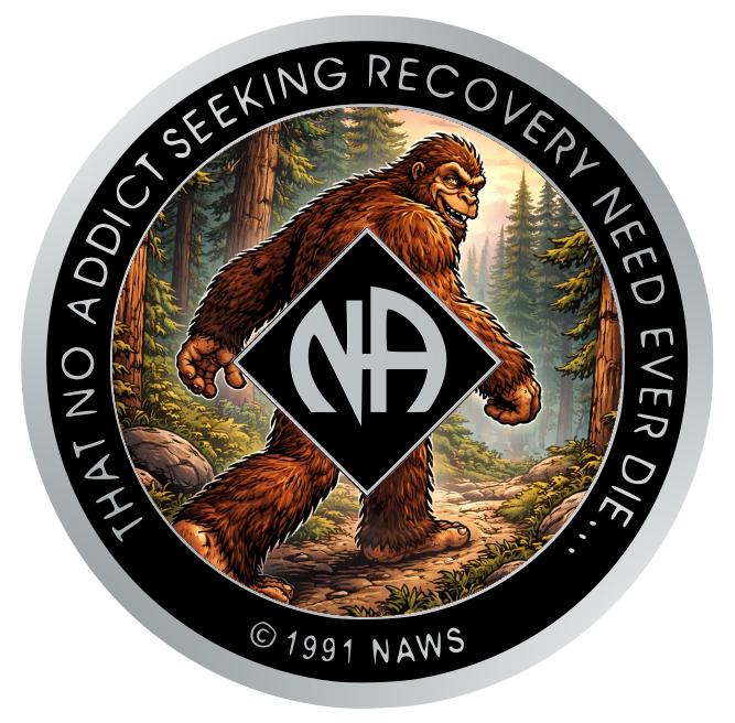 This Narcotics Anonymous medallion features a bold Bigfoot striding confidently through a forest landscape. Strong, steady, and moving forward, the design symbolizes perseverance, independence, and continuing the journey — no matter the terrain.