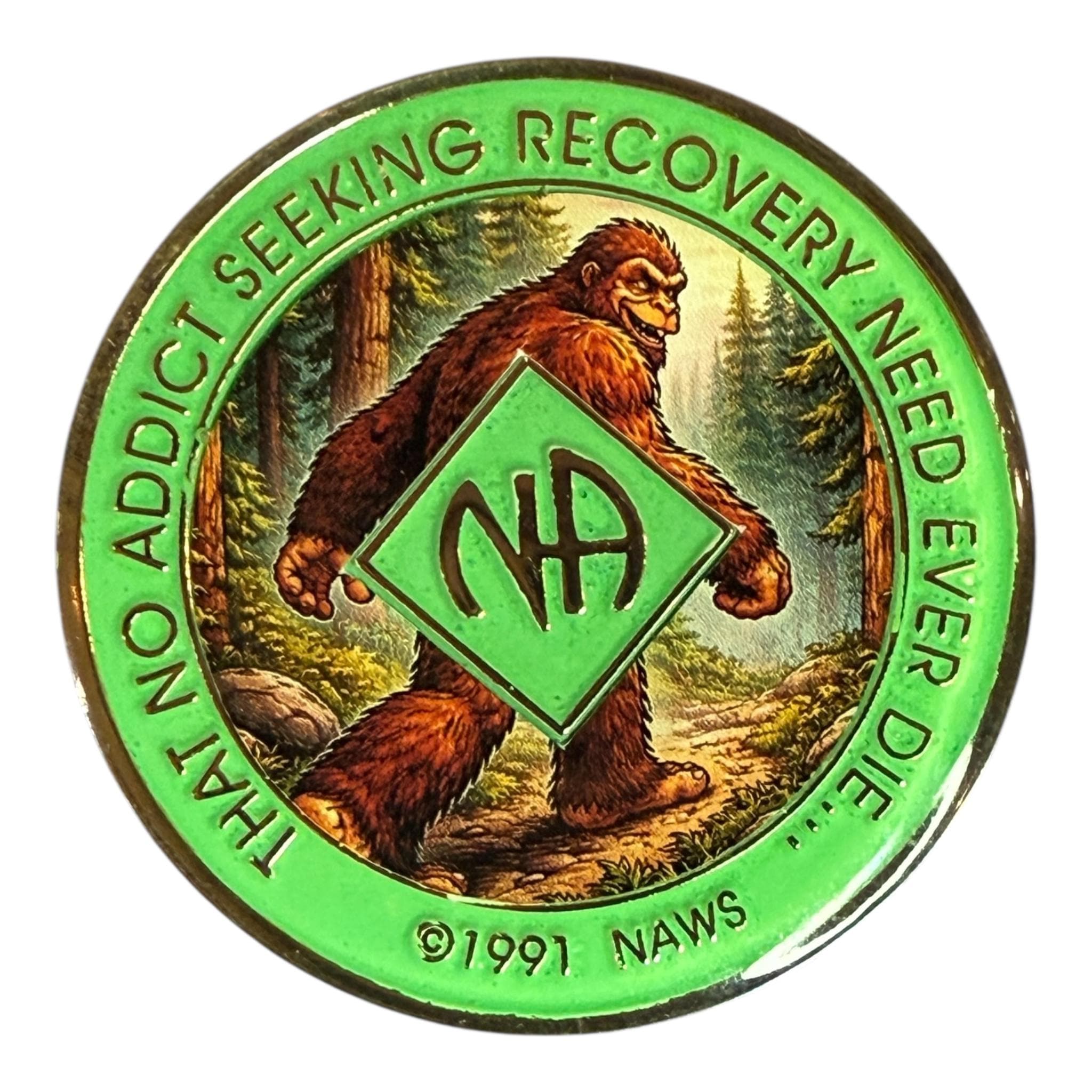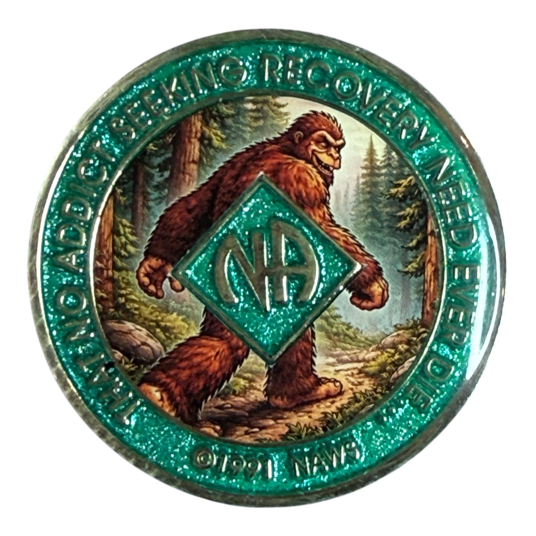 Bigfoot NA Recovery Medallion 34mm – Narcotics Anonymous Sobriety Chip – Custom Color Clean Time Gift