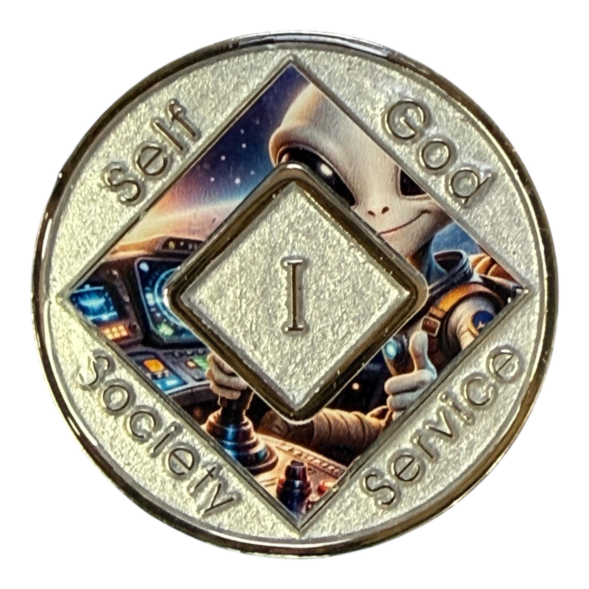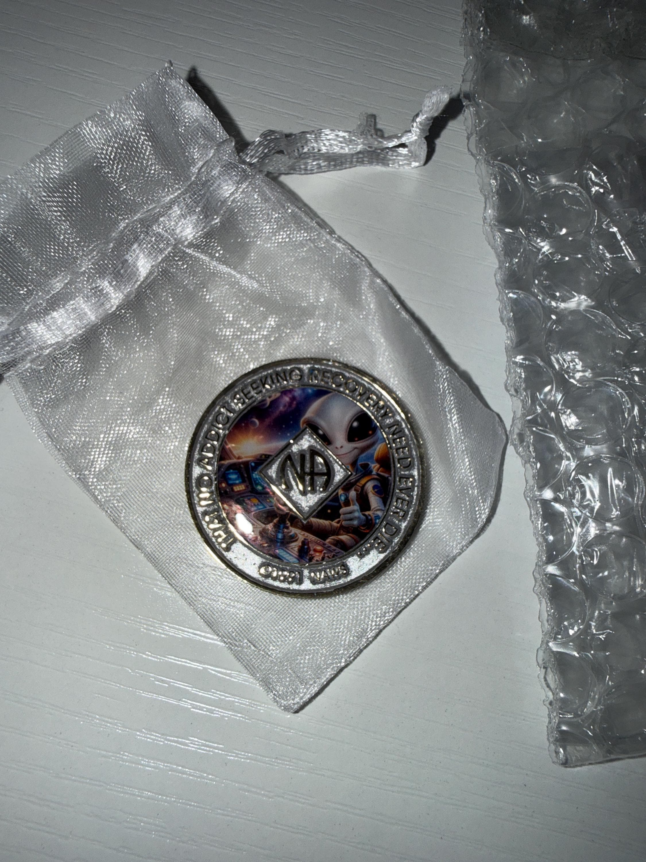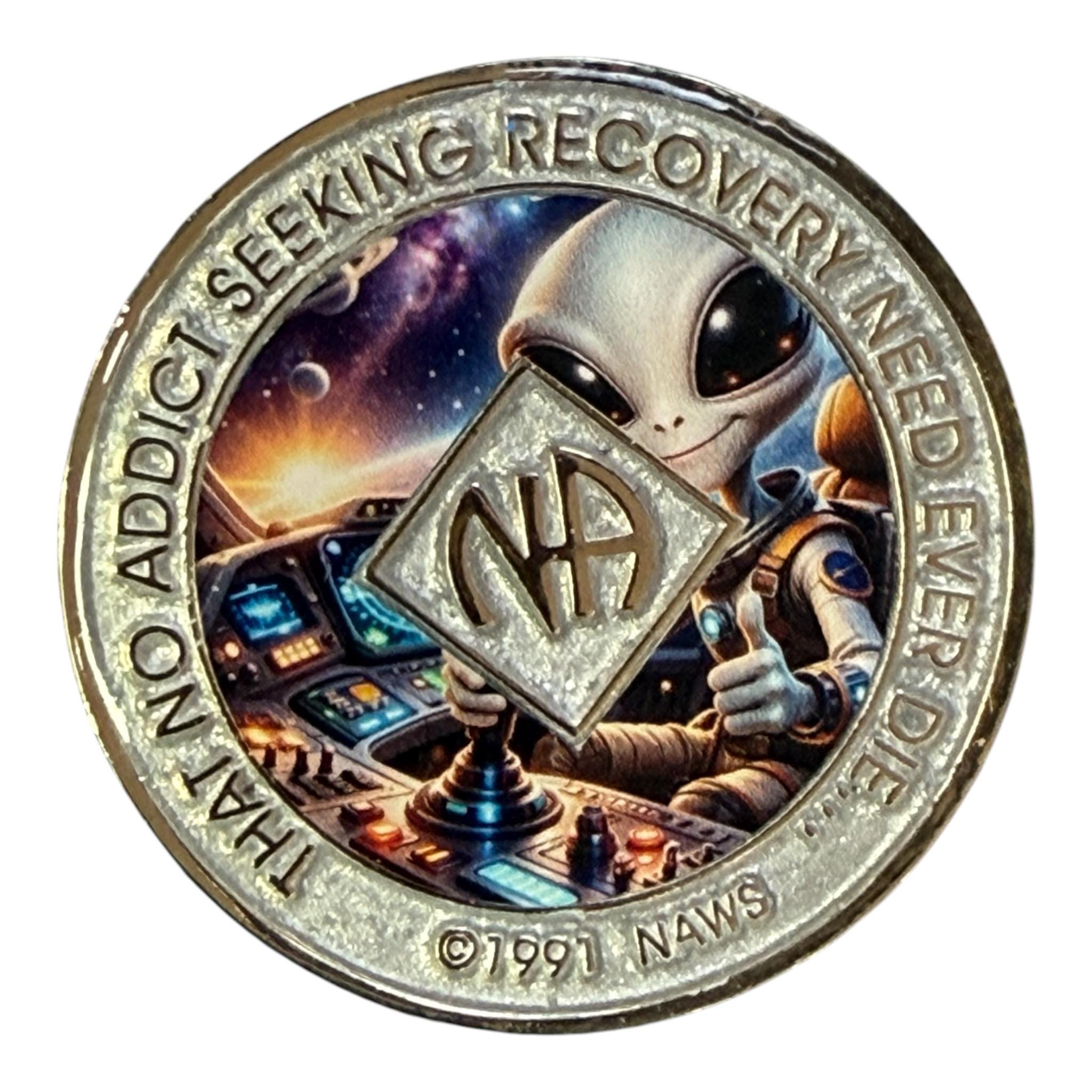 Alien Astronaut NA Recovery Medallion 34mm – Narcotics Anonymous Sobriety Chip – Custom Color Clean Time Gift
