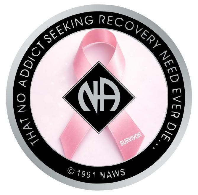 Pink Ribbon Survivor NA Recovery Medallion 34mm – Narcotics Anonymous Sobriety Chip – Custom Color Clean Time Gift