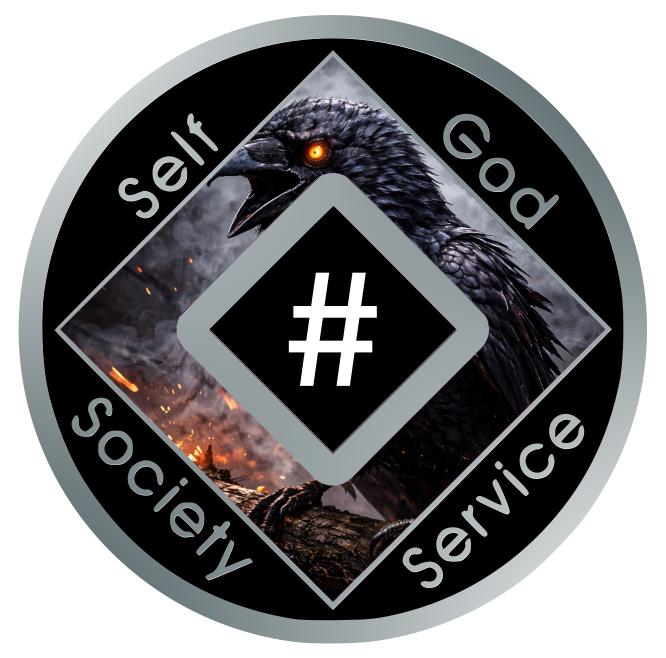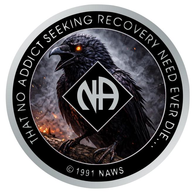 This Narcotics Anonymous medallion features a powerful raven with glowing eyes perched amid smoke and embers, creating a bold and intense design that symbolizes transformation, survival, and rising from the darkest moments.